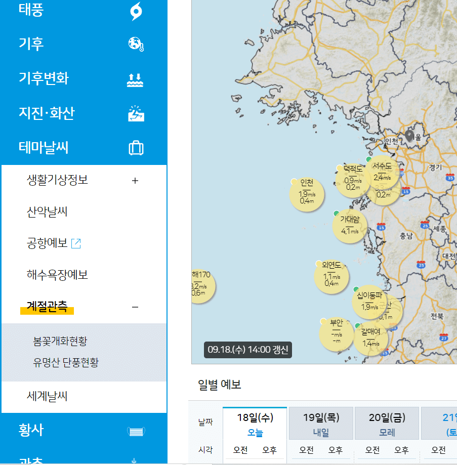 1. 웨더아이에서 단풍 시기 알아보는 방법