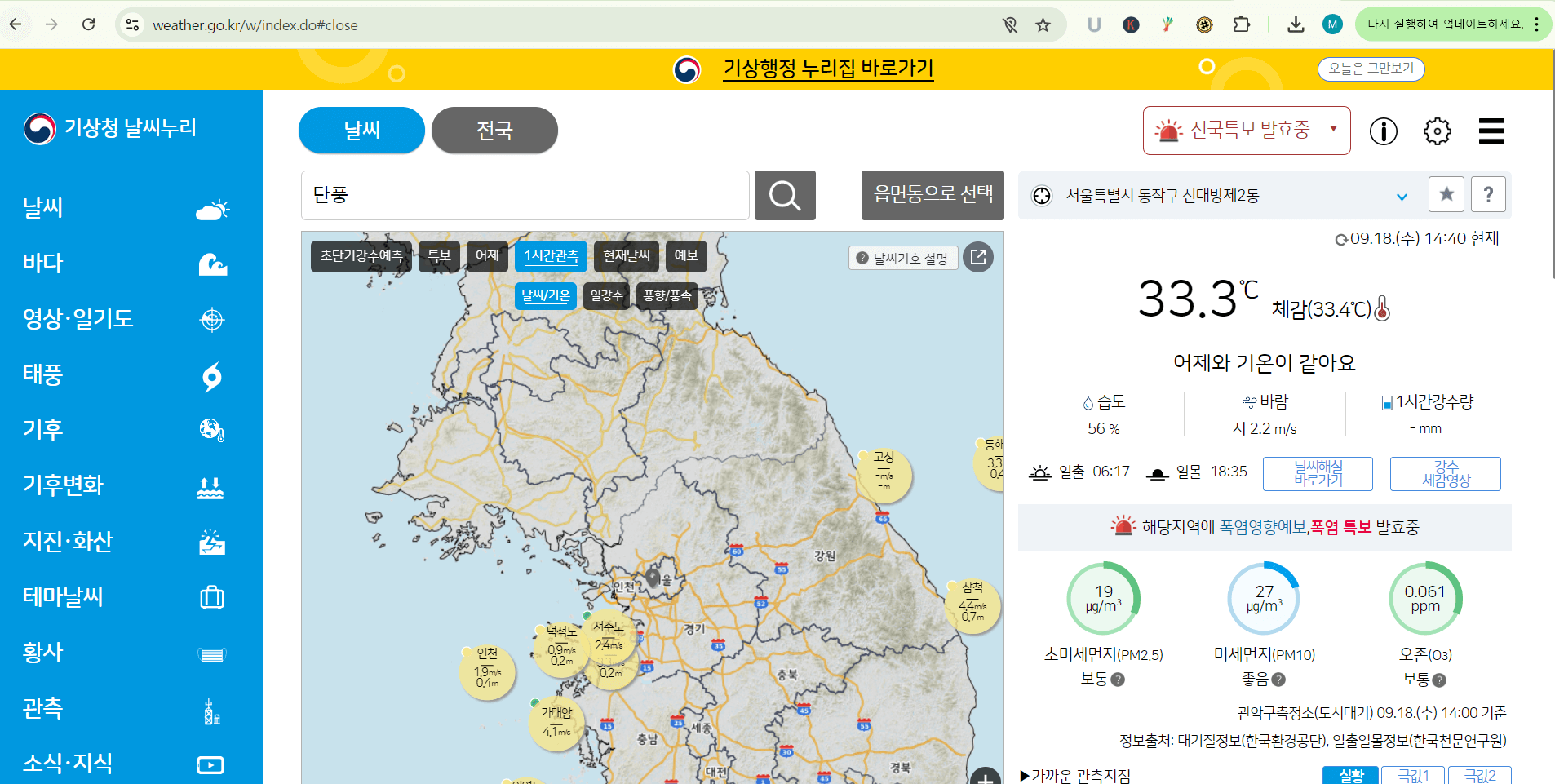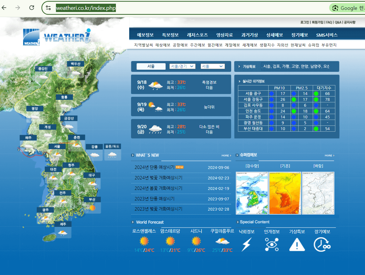 Step 1: 기상청 사이트 접속하기 (https://www.weather.go.kr)