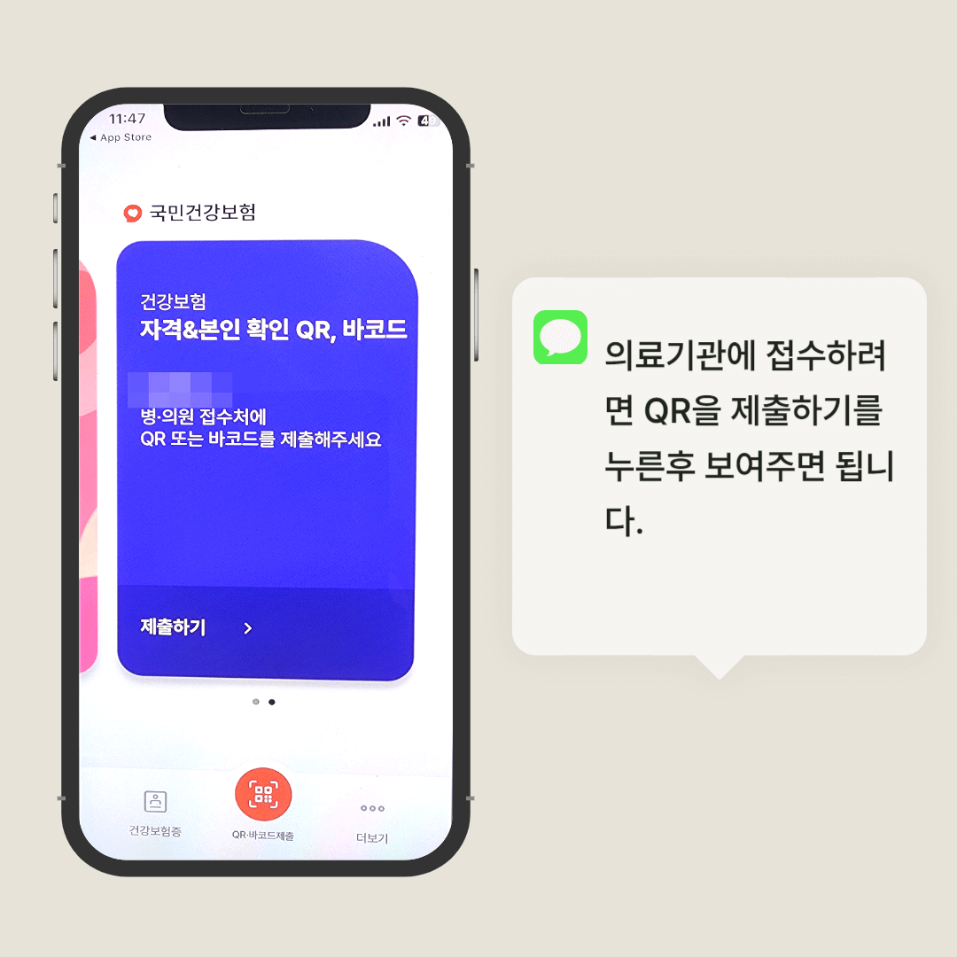 18) QR을 제출하여 의료기관에 접수를 진행합니다.