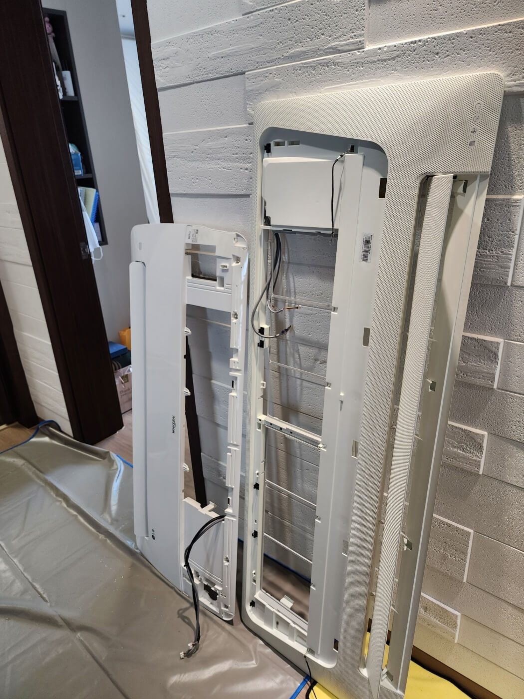 에어컨을 하나씩 분해해서 청소를 진행하고 다시 조립해야 해서 분해를 시작하시고 업체에서 준비하신 장비들로 보양작업을 합니다. 보양작업은 에어컨 내부의 곰팡이와 먼지나 오염된 지저분하것들을 물과 청소물품으로 깨끗하게 청소해야 하기때문에 꼭 필요합니다.