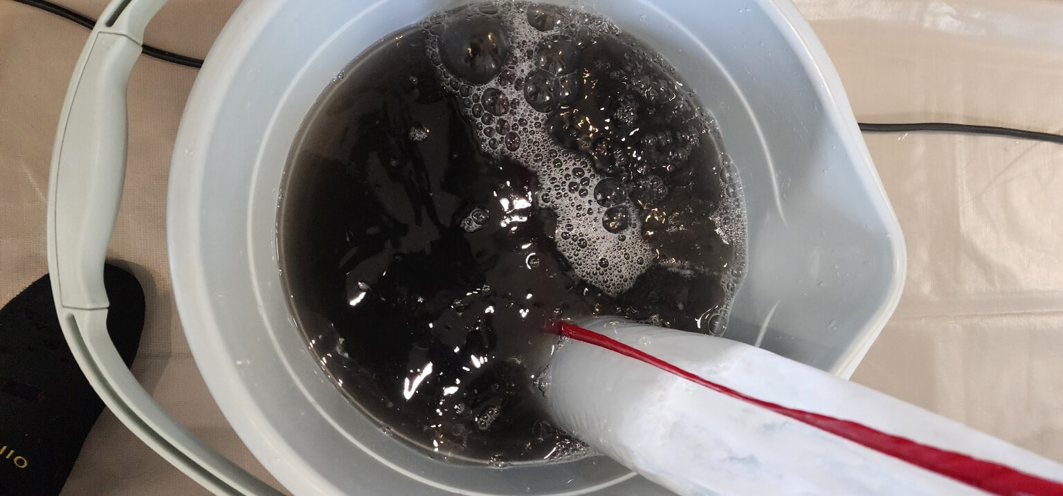 분해한 에어컨 내부에 청소를 위한 작업을 하고 물로 세척을 진행합니다.
